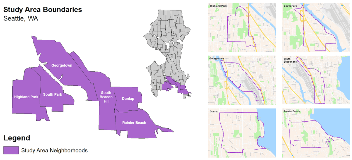 This research will take place in the Georgetown, South Park, Highland Park, South Beacon Hill, Rainier Beach, and Dunlap neighborhoods of Seattle, WA.